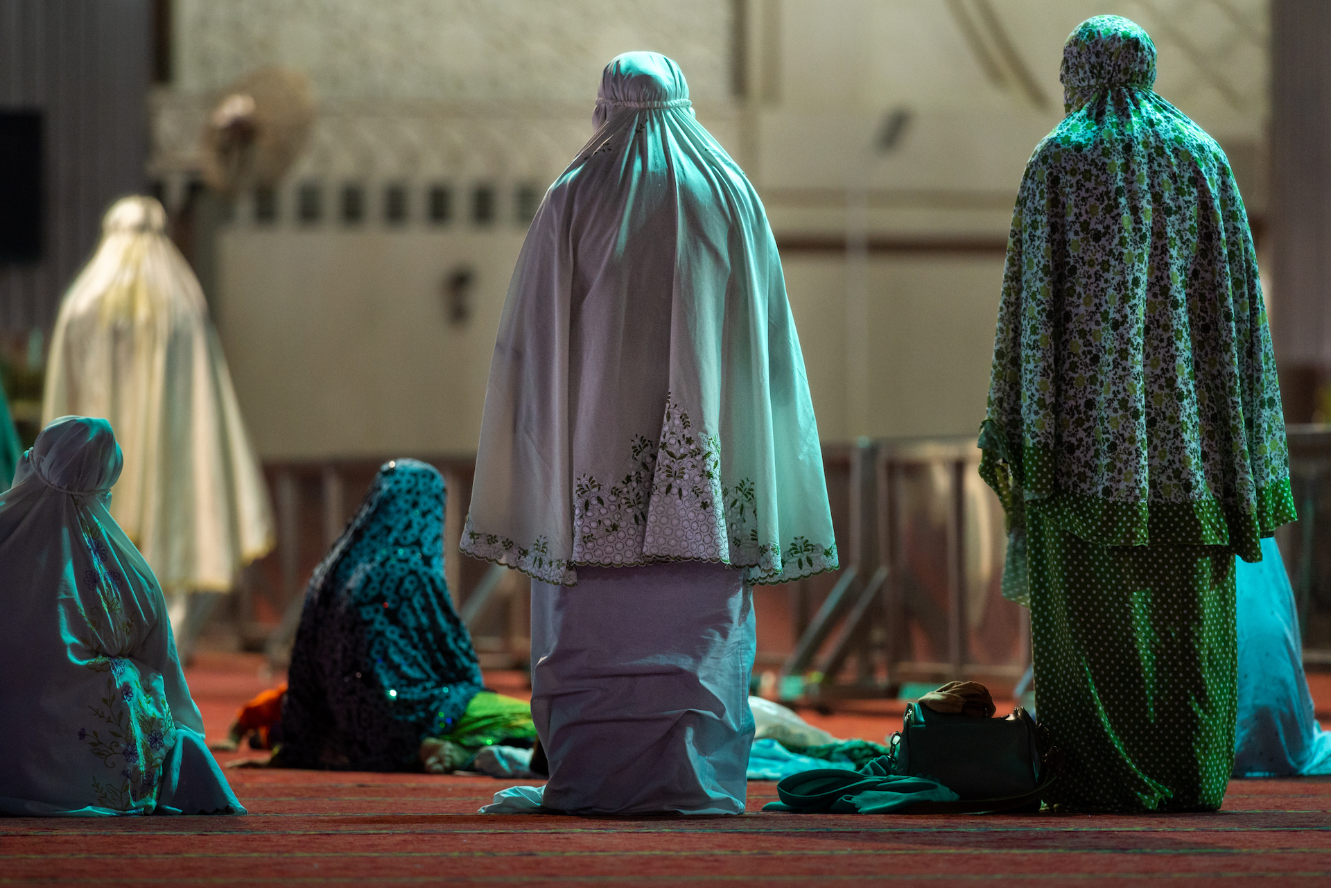 Muslim women in Jakarta, Indonesia, gather for daily prayer in a mosque. Photo by Luke In.