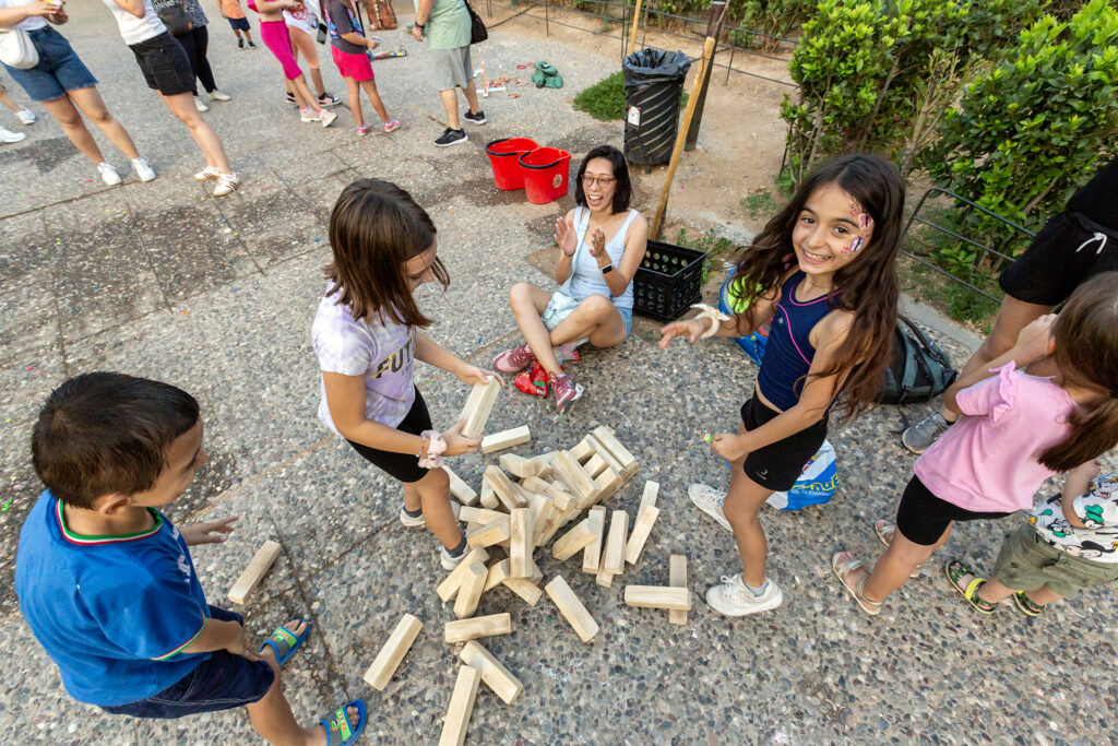 A German volunteer blew bubbles across the park sidewalk as toddlers, hands high in the air, scampered to capture the flying soap. Just steps away, a group of boys kicked a ball around with another volunteer. Others played volleyball, giant Jenga, tic-tac-toe and catch. The largest group crowded around the face painting table to get hearts, unicorns and superhero logos painted on their body.
