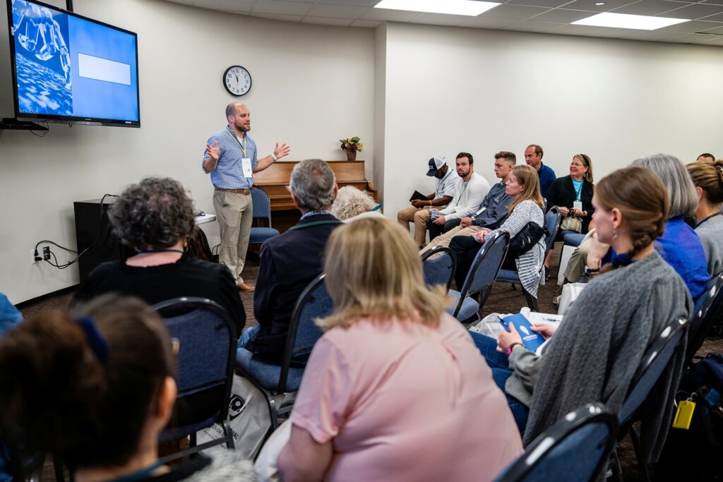 IMB missionary and physician assistant Josh Cobb speaks about healthcare strategies in Europe during the “Affinity Marathon” at the 2024 MedAdvance conference in Houston, TX. IMB Photo