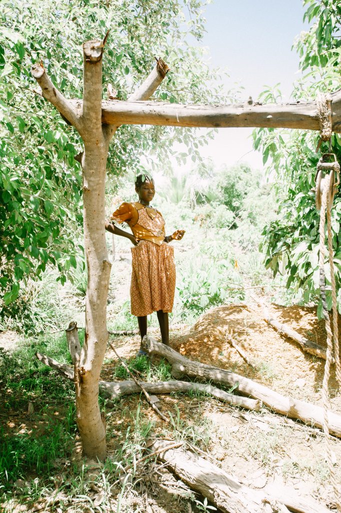 A Bambara family in the village of Falako in Mali, West Africa invites volunteers to see their garden. The Bambara village is one of 120 that will benefit from 500 tons of millet. The grain was provided to help stave off the starvation for about 31,000 Bambara people living in this rural area.
