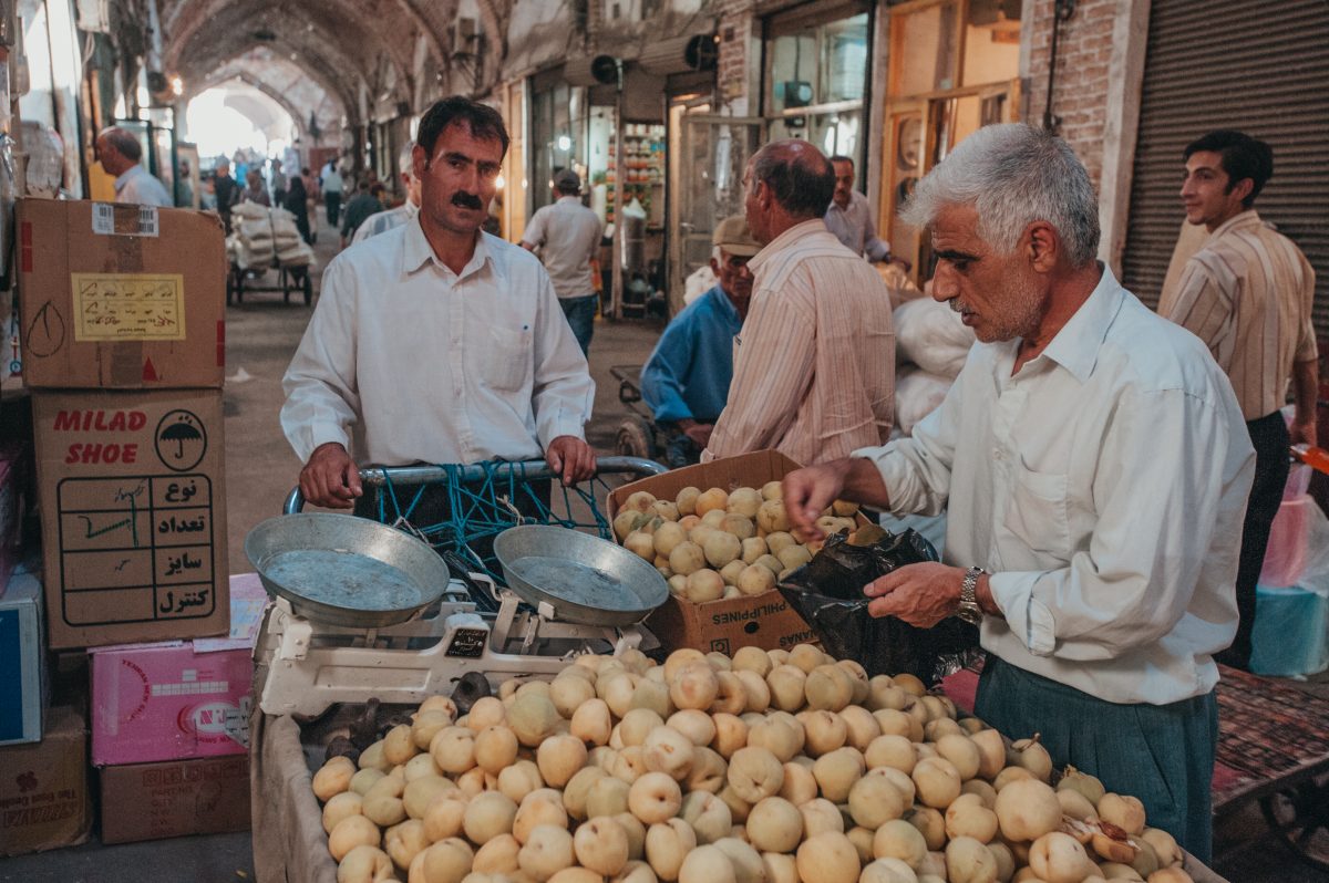 An Azeri man sells fruit at a stand in the covered bazaar in Tabriz, Iran. This huge bazaar, said to be the largest bazaar and the oldest covered bazaar in Iran, consists of about six (6) kilometers of connected corridors.