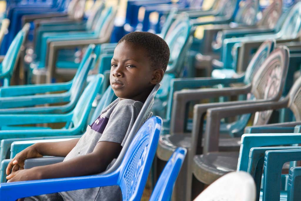 A boy sits in the shade waiting for the festivities to begin at the Baptist Medical Centre’s 50th Anniversary celebration in Nalerigu, Ghana.