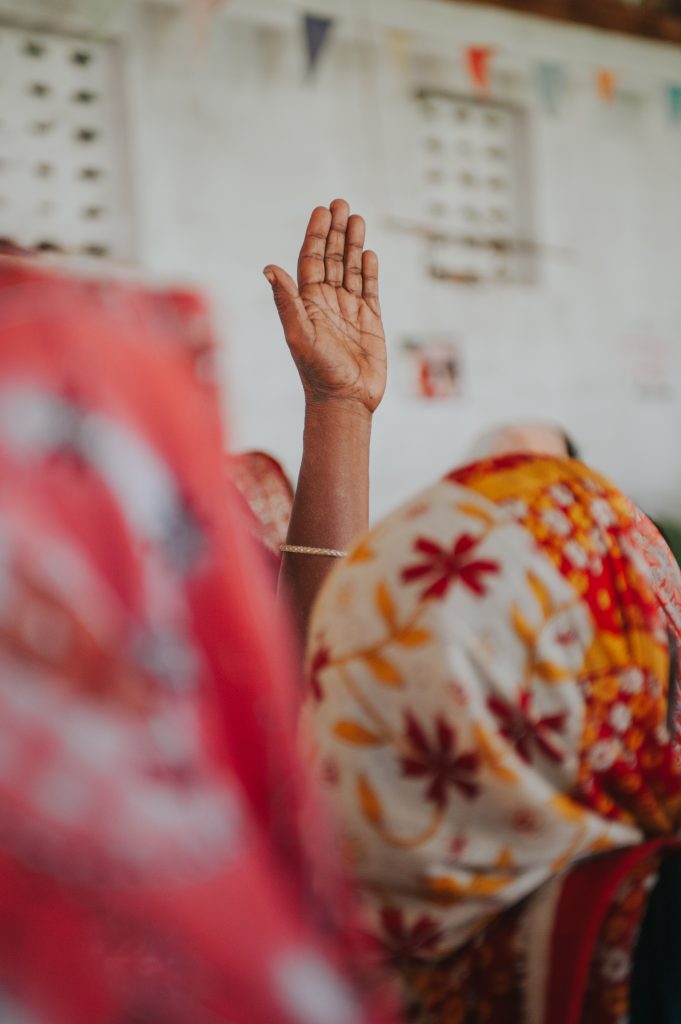 Indians worship together during a Sunday morning service at a village church. Tsumani relief given by Southern Baptists gave a small fellowship voice in their community and increased their church from 12 members to over 100.