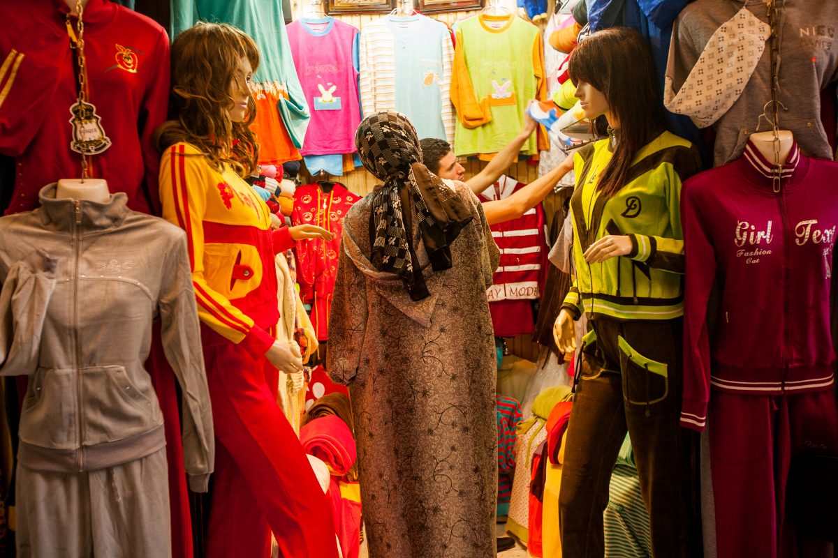 A woman shopping for clothes inside the Fez medina. Fez is one of the best-preserved Old Cities in the Arab world. The sprawling medina is also the world’s largest car-free urban zone. The massive medina, with its high walls and winding streets, cannot be navigated without a guide or you will surely get lost.