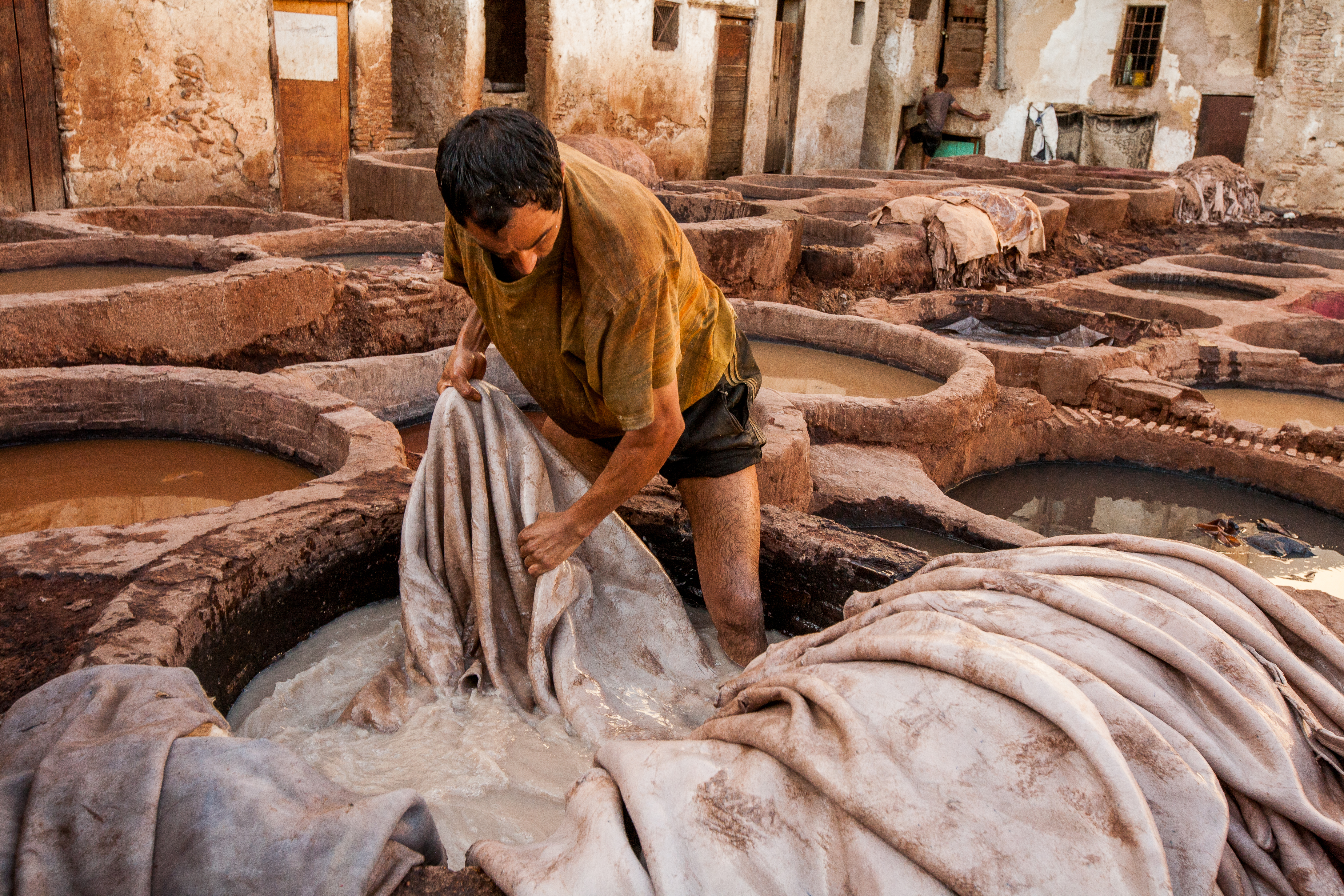 The leather tannery in the Fez medina features leather-making techniques unchanged since the Middle Ages. Men walk the narrow paths between huge vats of lye and colorful dyes; water wheels creak as the leather is rinsed, and buildings facing the tannery are covered with pelts hanging to dry. It smells about as bad as anything can smell. Fez is one of the best-preserved Old Cities in the Arab world. The sprawling medina is also the world’s largest car-free urban zone. The massive medina, with its high walls and winding streets, cannot be navigated without a guide or you will surely get lost.