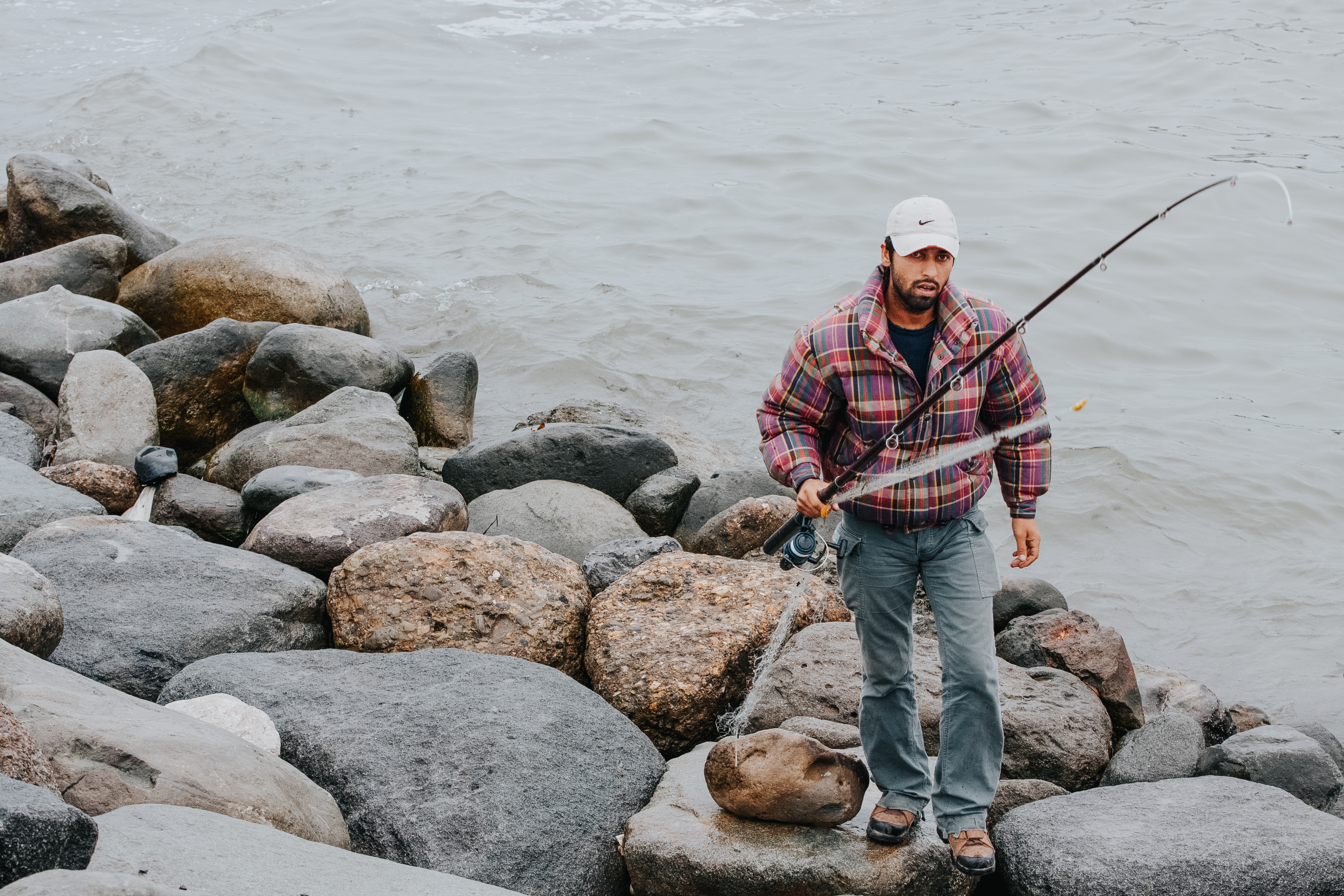 Men fish along the Caspian Sea coast in the town of Ramsar.