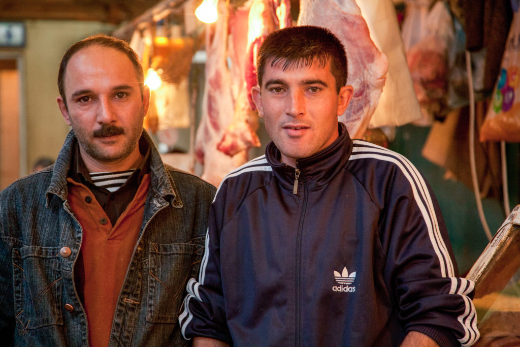 A scene from one of the main food markets in Baku. Locals use these markets instead of conventional grocery stores to buy most of their fresh food, vegetables, meat, spices, nuts, etc.
