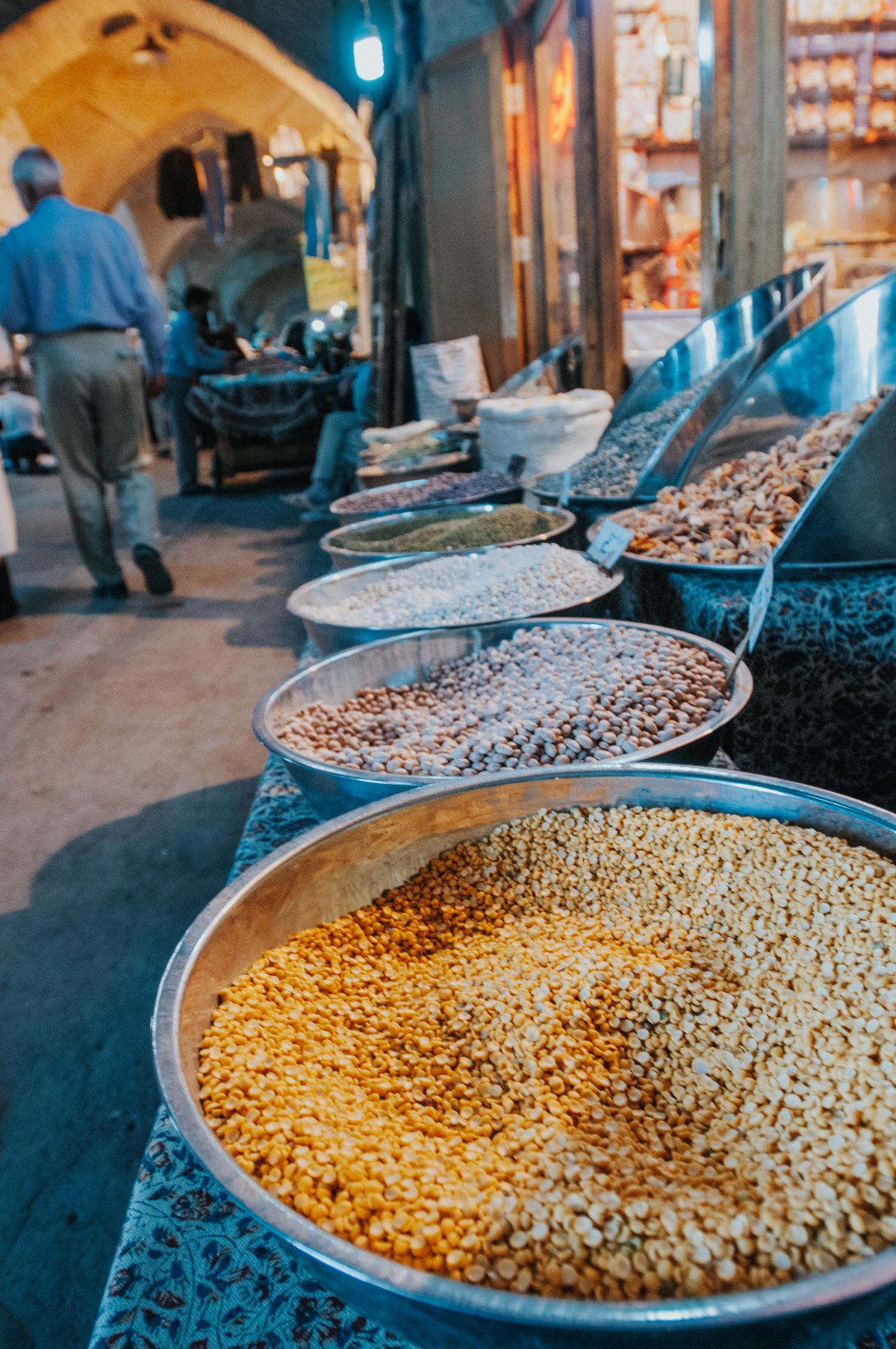 Food for sale in the market in the Imam Square in Esfahan, Iran.