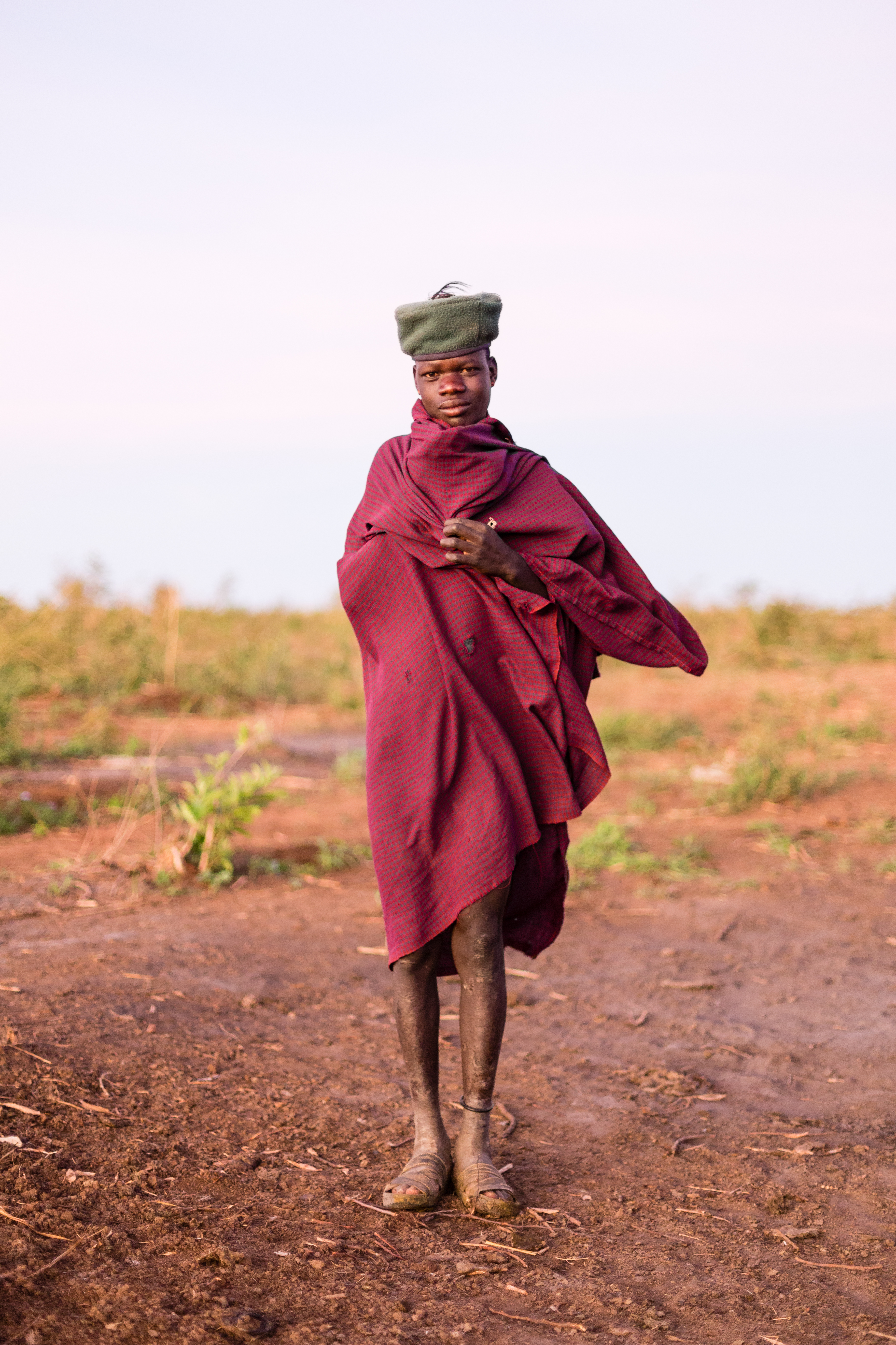 A village warrior stops for a photo.