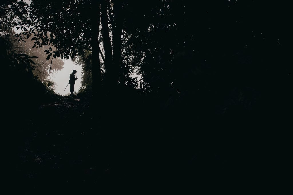 A Palaung man hikes through mud to visit a friend in a neighboring village. The Palaung are inaccessible by roads and inhabit villages in the remote mountains of eastern Myanmar.