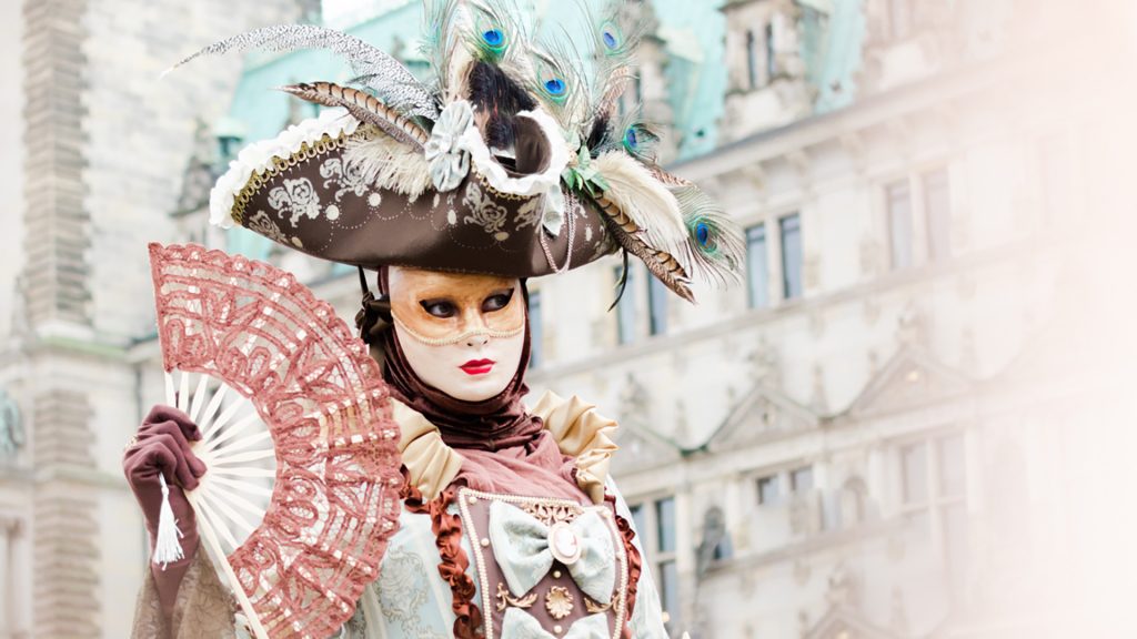 The “Magical Mask Festival” in Hamburg, Germany takes place each year, around the end of January. This yearly event is a tribute to the carnival in Venice. For two days, individuals in beautiful masks and impressive costumes parade through the main tourist area of Hamburg. With the town hall, canals, old beautiful buildings, and the city lake as their backdrop, individuals disguise themselves in beautiful costumes and take pictures with tourists and locals as well and pretend for a moment to be someone else by covering their faces with masks.