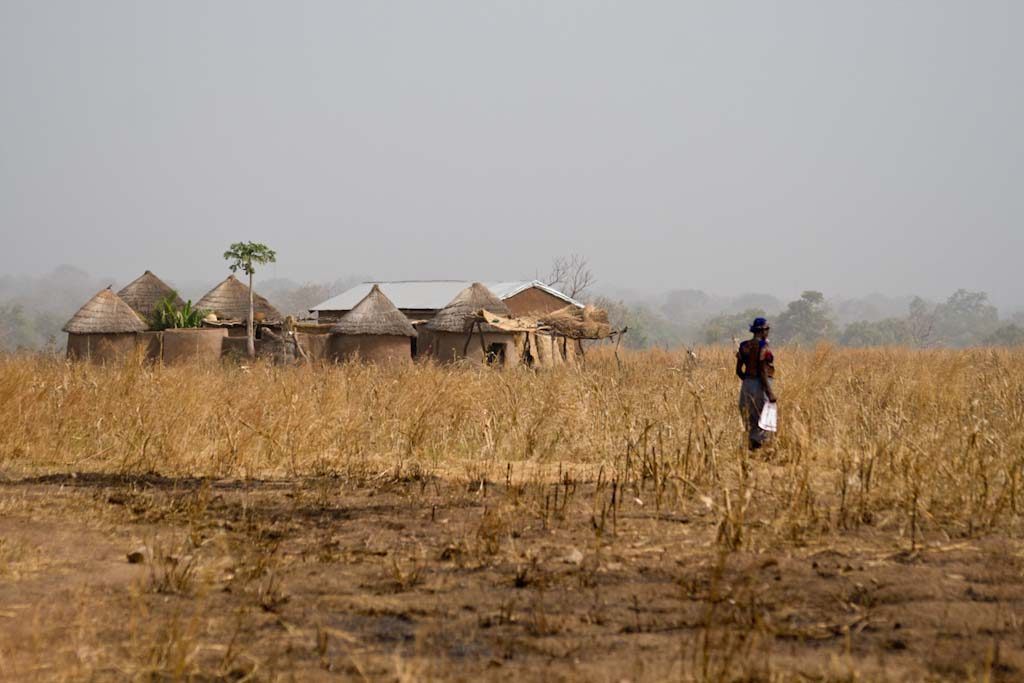 A woman walks through the Kokomba village of Gbangu-Nagbo, Ghana where nurses from the Baptist Medical Centre Public Health Department hold regular mobile clinics.
