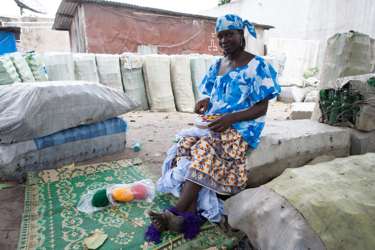 A Hausa woman works on embroidery in Abidjan, Ivory Coast.