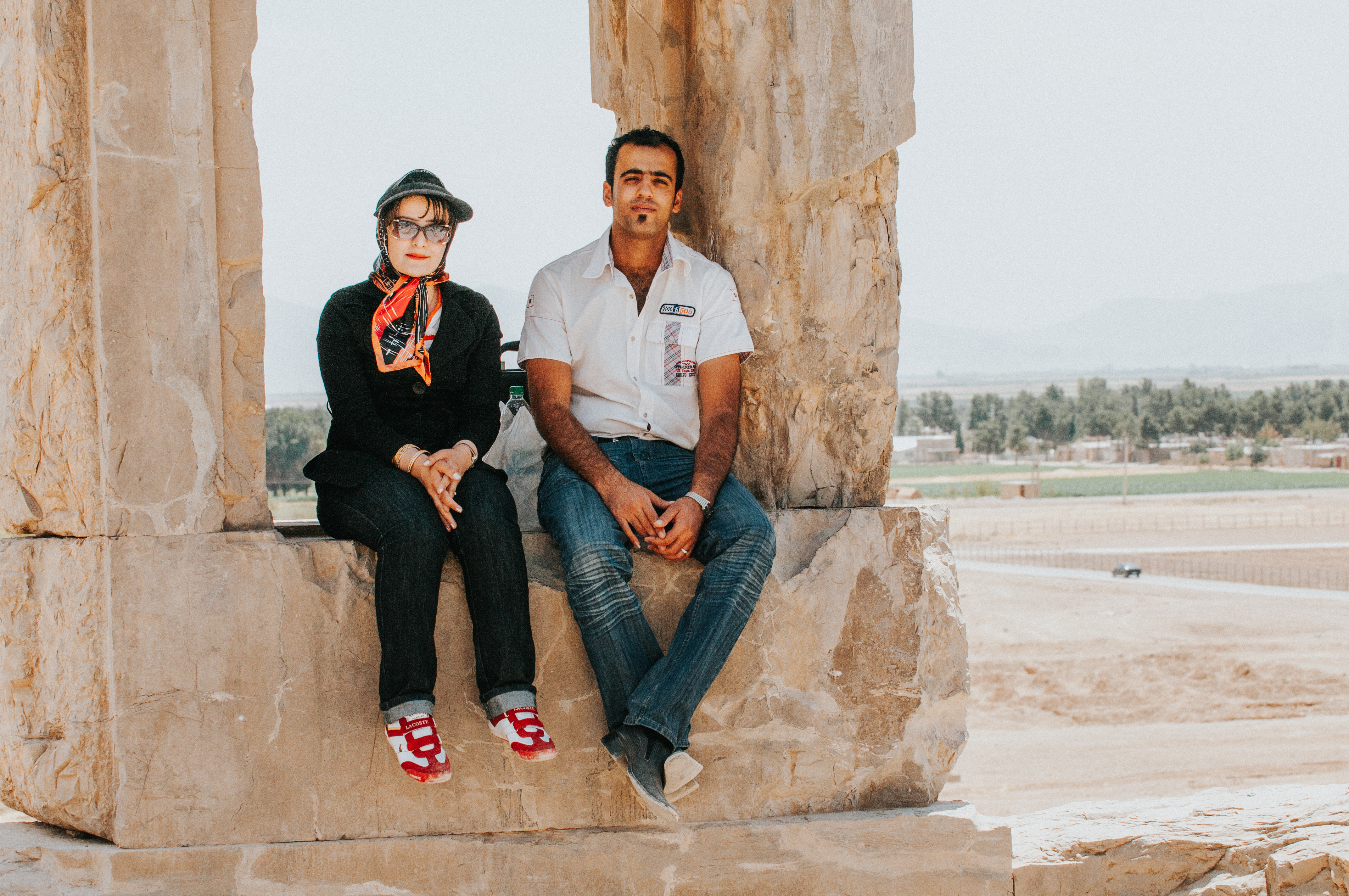 A portrait of an Iranian couple sitting among the ruins of Persepolis, Iran. Persepolis was one of the Persian empire’s cities and was burned to the ground by the army of Alexander the Great in 330 B.C. A tour guide said Persepolis is believed to have been used as a ceremonial site about one month out of each year, around the Persian new year (Navroz) in the spring. People would come from all over Persia to celebrate the holiday here.