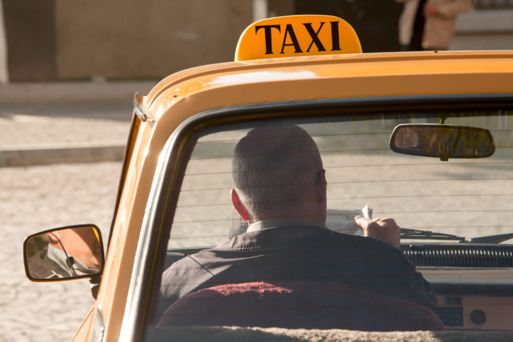 A taxi driver reads the paper while waiting for his next fare in one of the many markets around Baku.