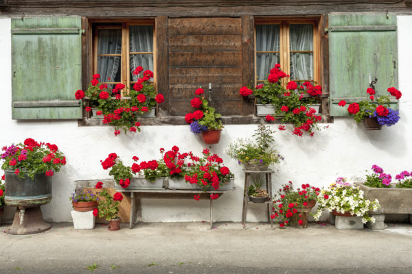 Flowers outside a home in the Lauterbrunnen Valley outside Interlaken, Switzerland.
