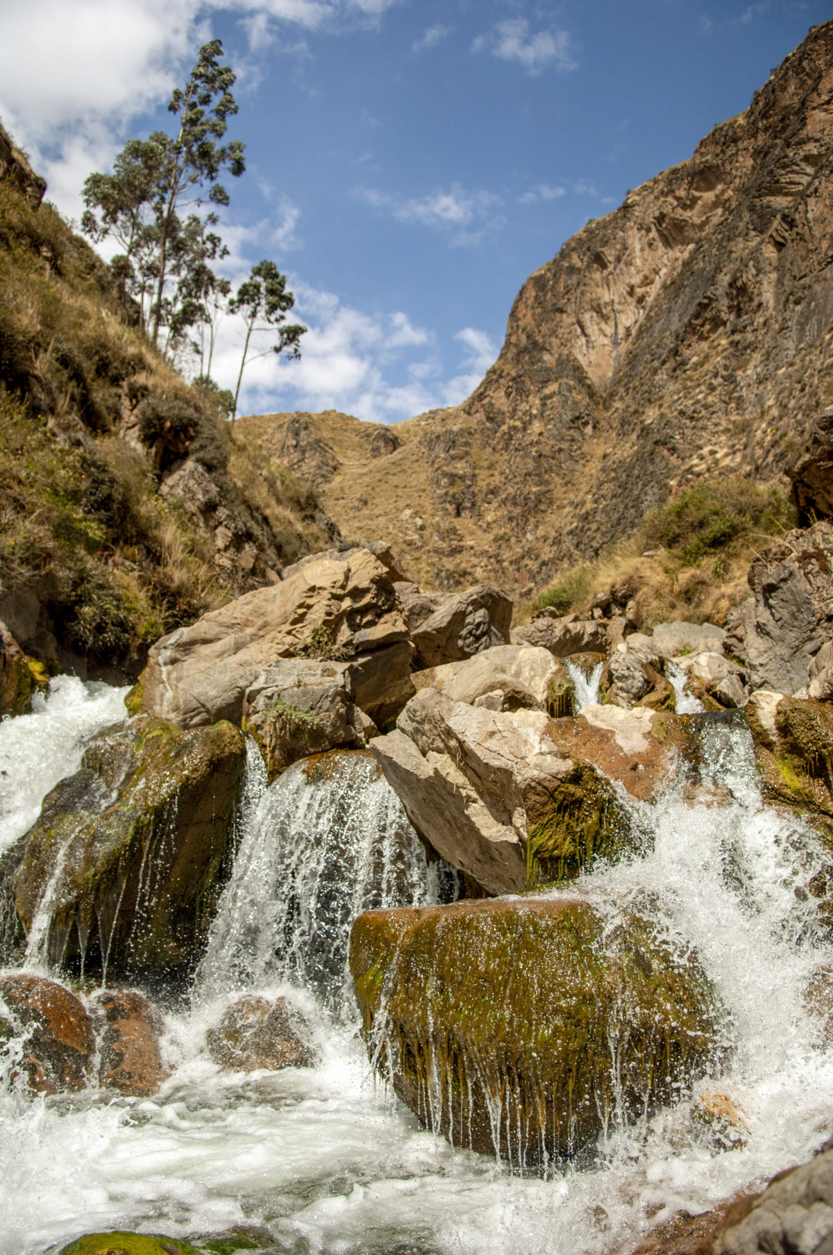Waterfall in the Andes Mountains in Peru.