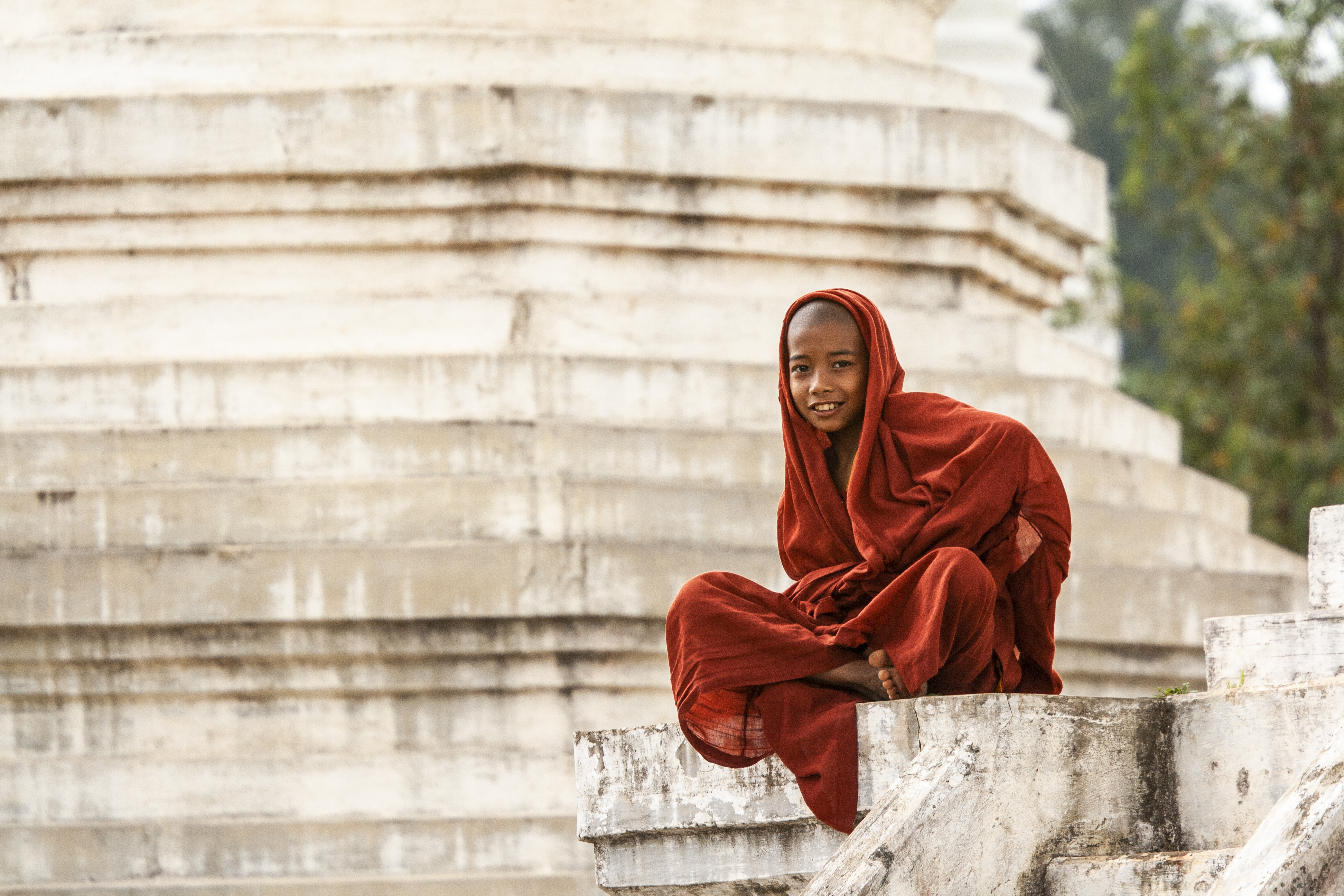 A young Buddhist monk at a temple in Kalaw, Myanmar.