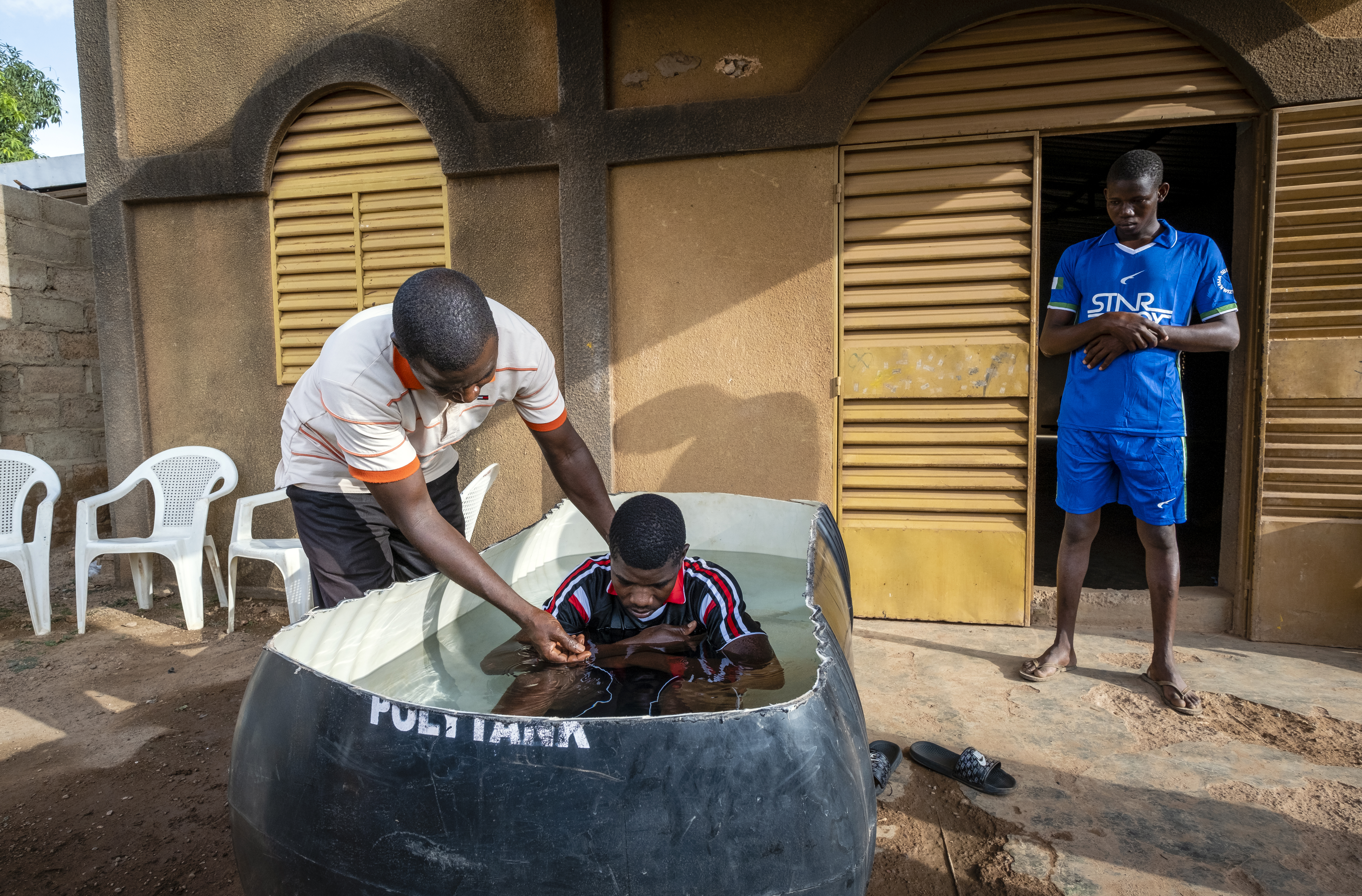 Burkinabé pastor Bonogo Fulgence baptizes two truck drivers in Ouagadougou, Burkina Faso. The men became Christians through the IMB’s West Africa trucker ministry a few weeks before. They were baptized the day before they were scheduled to drive their trucks to another country.