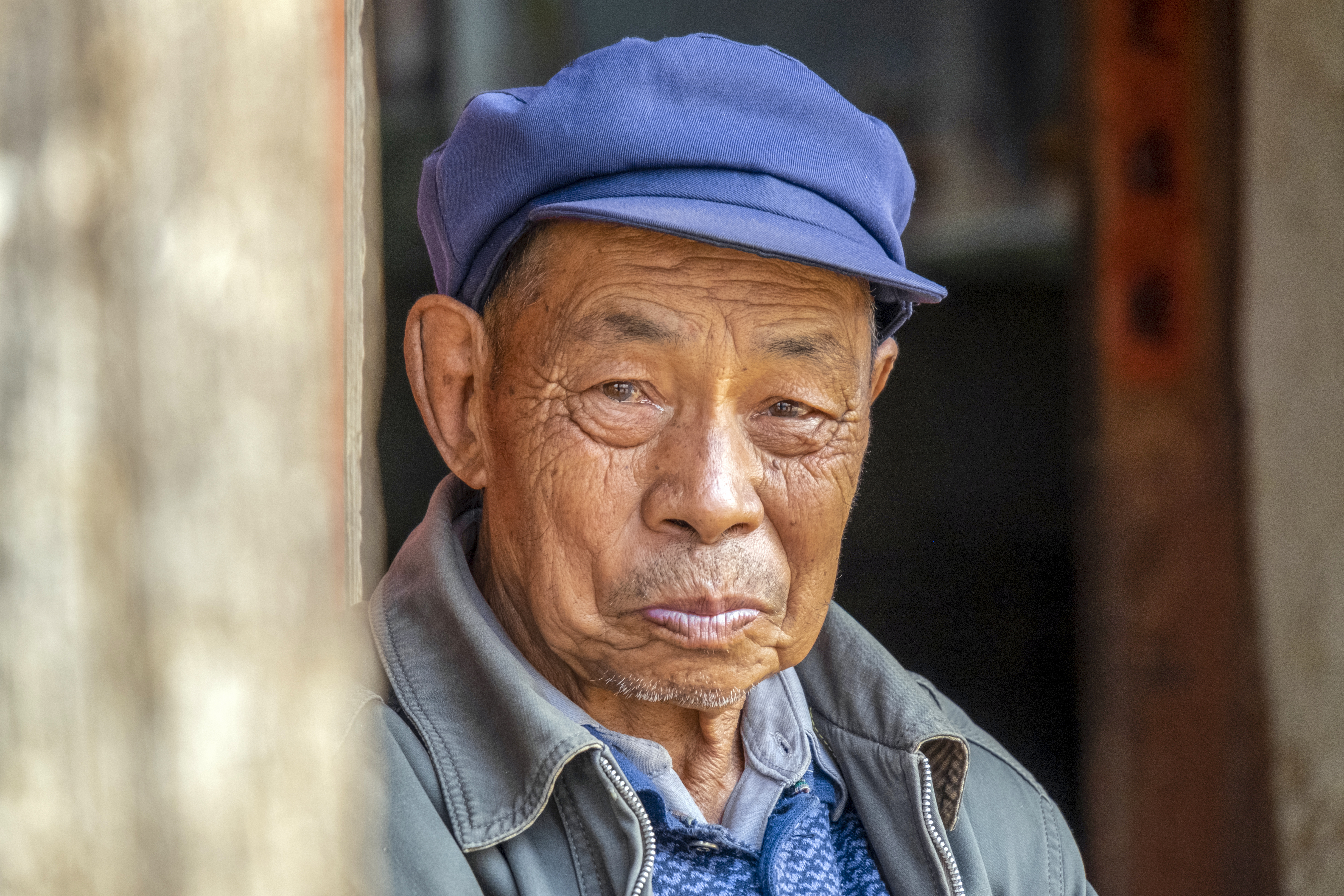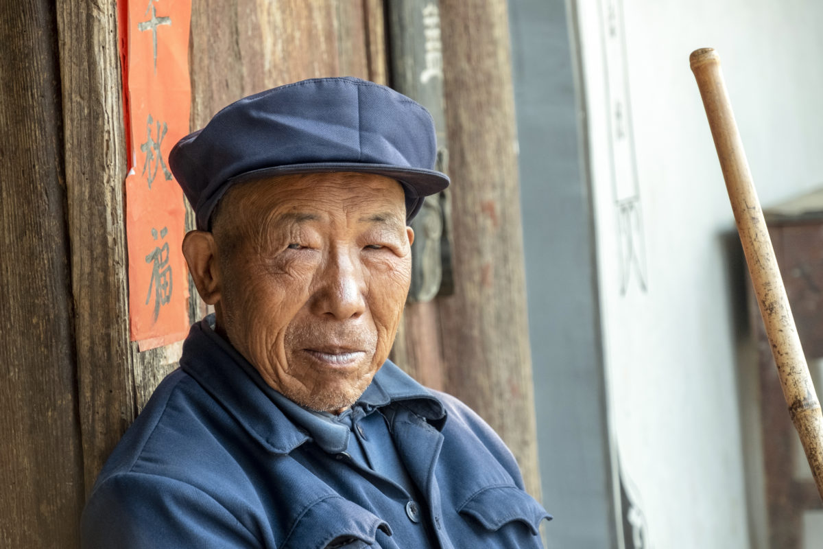 Portrait of a man in the historic village of Shaxi in Jianchuan County, Yunnan province, China.