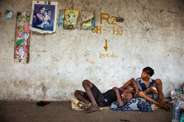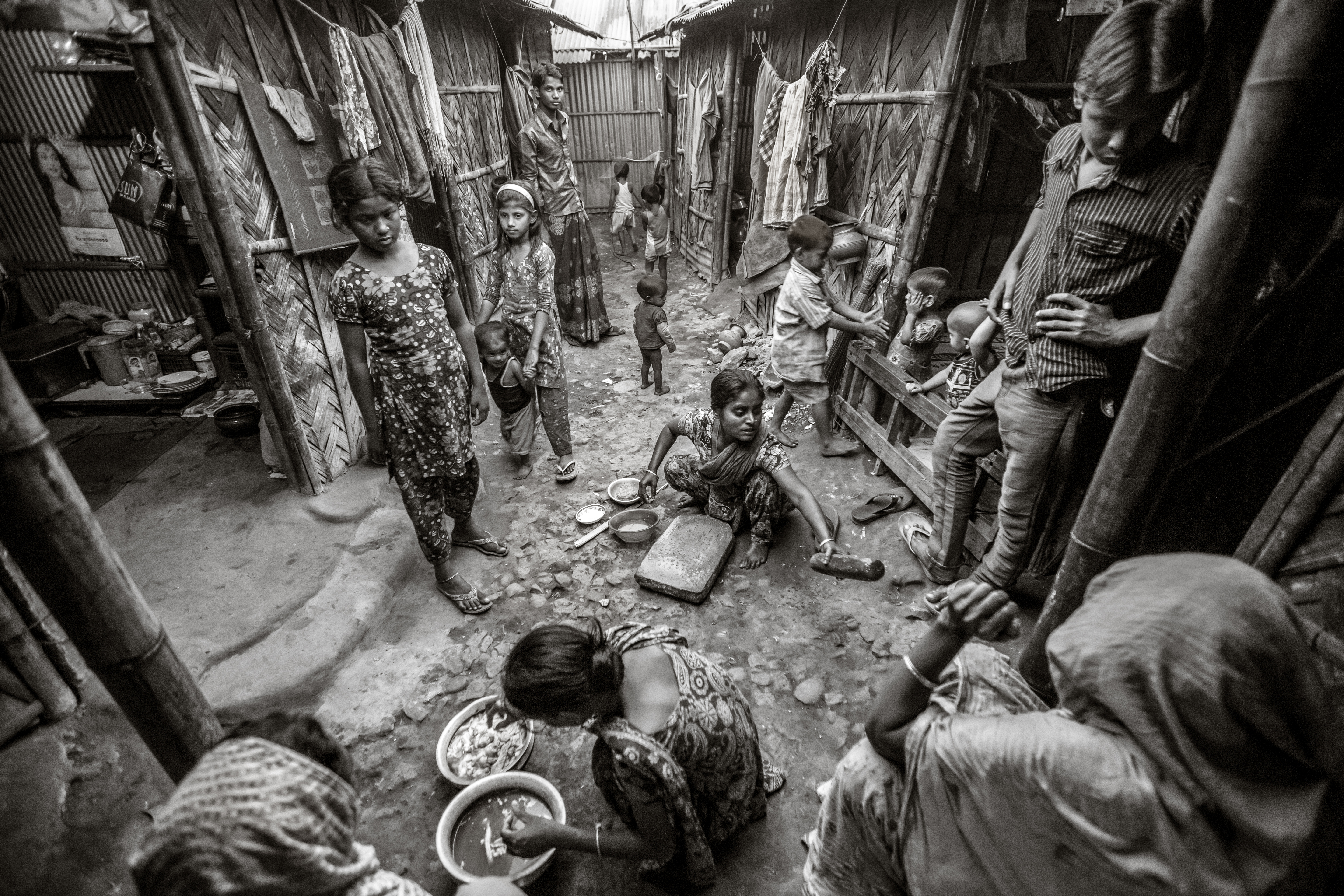 A family in South Asia prepare for a meal in a slum in South Asia.